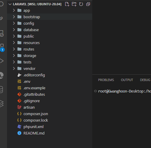 일단 위에서처럼 라라벨을 설치하고 나면 많은 디렉토리와 루트 파일들이 보입니다.